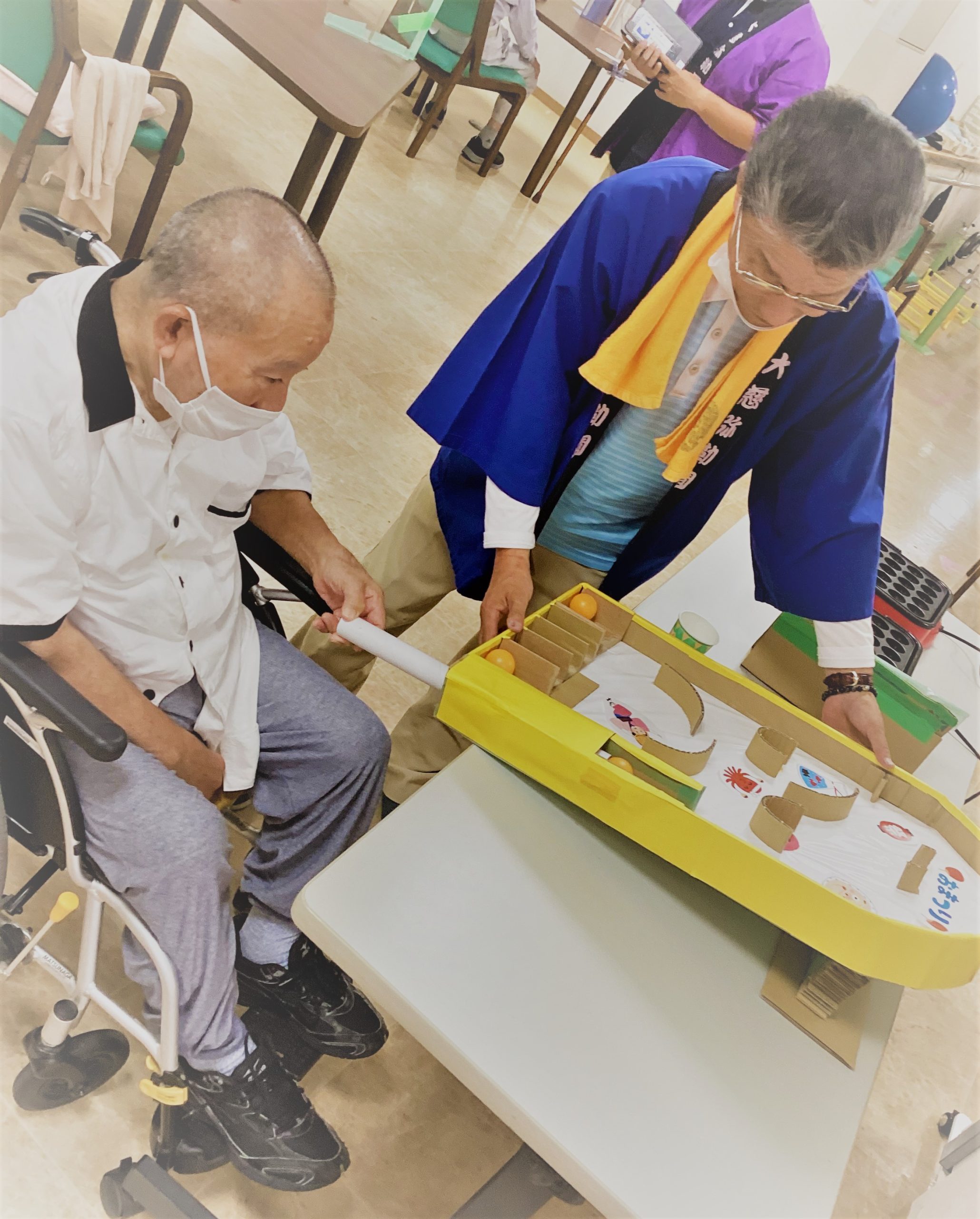 レクリエーションは射的と、運転手さん手作りのスマートボールを行いました。