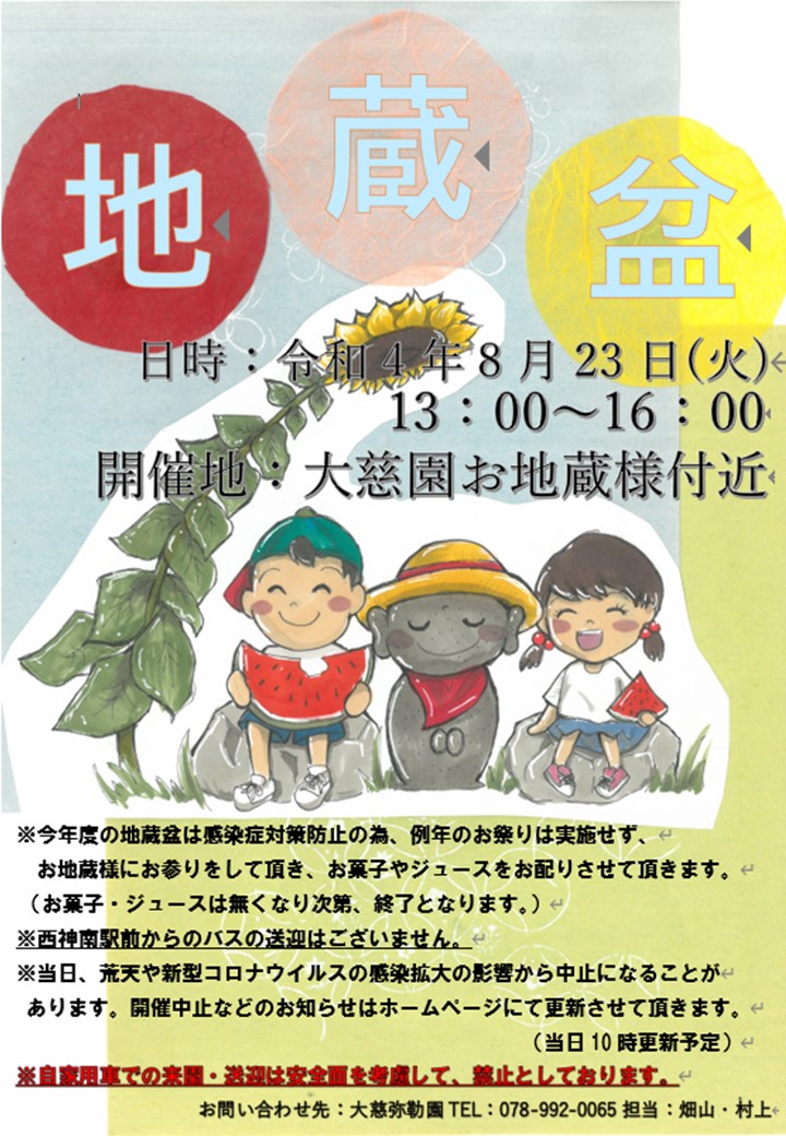 本日開催予定の「大慈園 地蔵盆」について